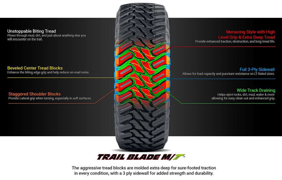 - The Trail Blade® M/T features an extra deep tread for off-road capability.